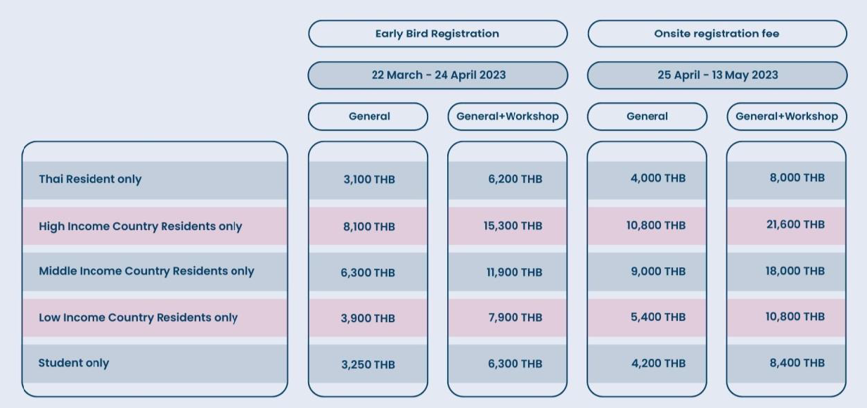 Registration Fees for Online Participant : 2,880 THB (80 USD)